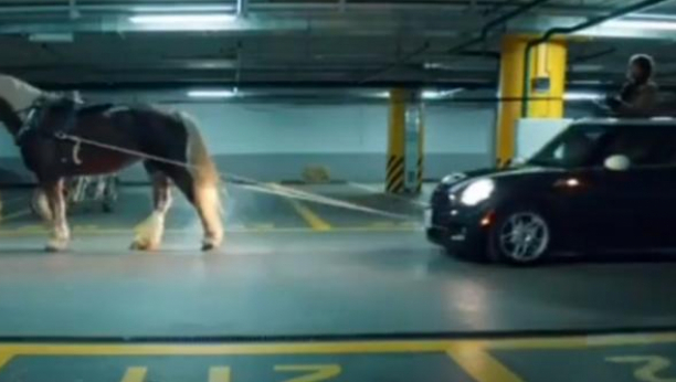 Protagonista snimka, mladić, seda za volan automobila, ali ne može da izađe sa parkinga jer je rezervoar za gorivo prazan. U kolima ima sena. Uzdahnuvši, čovek otvara otvor na krovu, ustaje i podiže uzde.