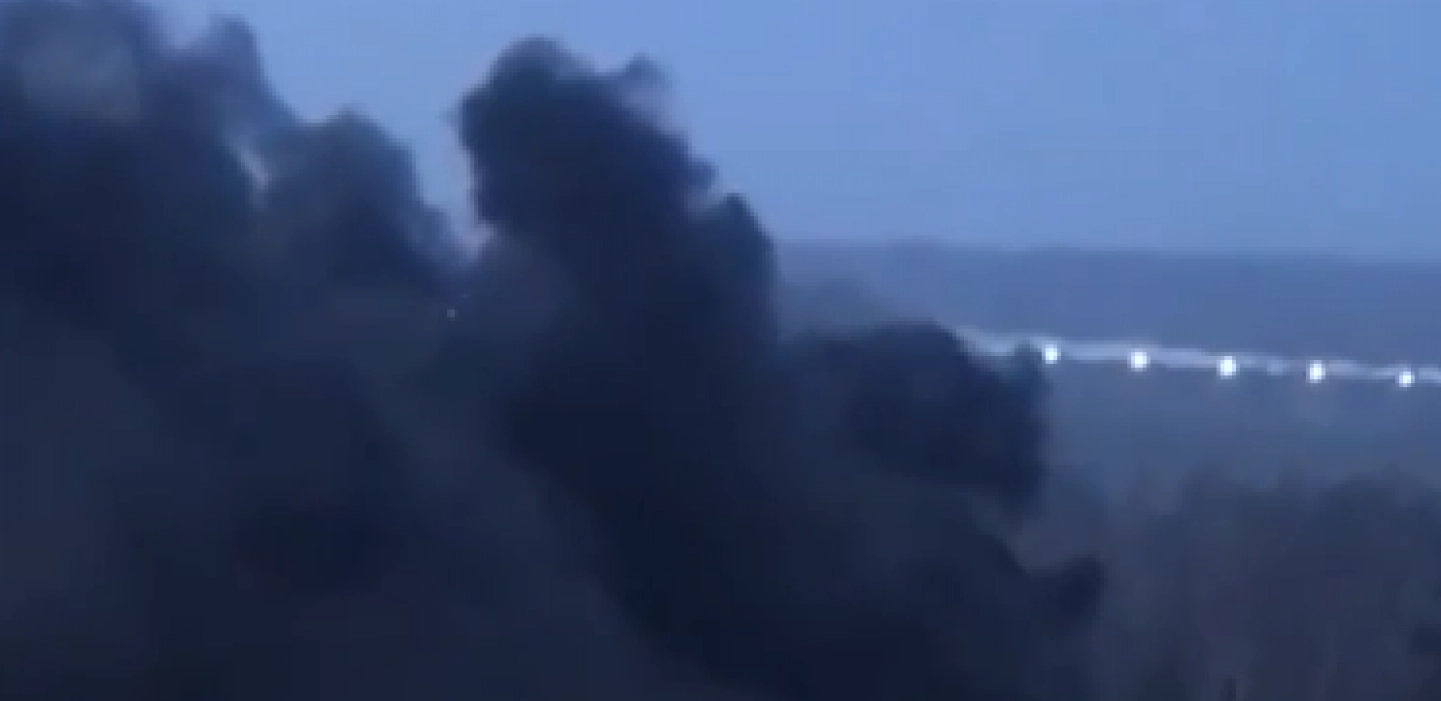 Na snimku koji se danas pojavio na društvenim mrežama vidi se avion An-12 sa zapaljenim motorom na aerodromu Tolmačovo, prenosi TASS.