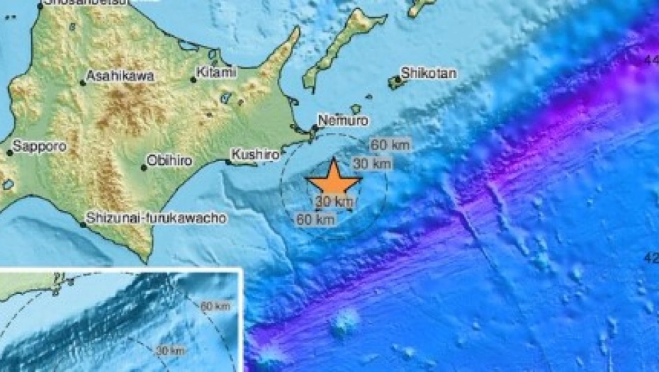 Potres se dogodio u moru, u blizini grada Kuširo na najsevernijem ostrvu Hokaido, navela je japanska meteo služba.