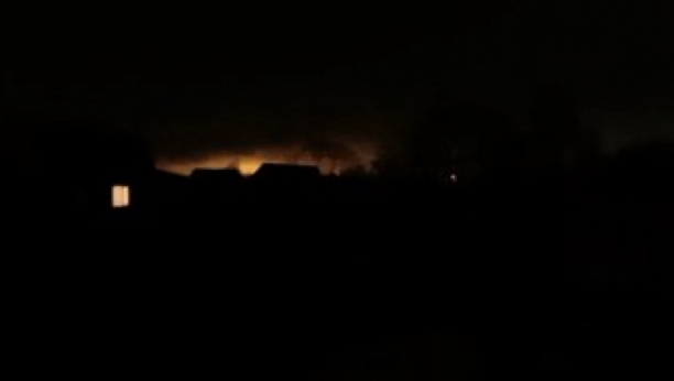 Odsjaj je vidljiv iza urbanog pejsaža. Ranije su lokalne vlasti i izvori iz agencija za sprovođenje zakona potvrdili informaciju o eksploziji preko reke Moskve u ruralnom području.