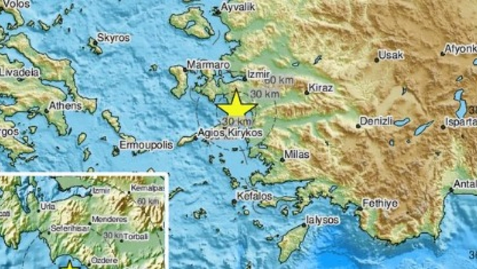 Prema podacima Evropsko-mediteranskog seizmološkog zavoda, zemljotres jačine 2,7 stepeni na Rihterovoj skali potresao je područje 27 kilometara severoistočno od Kušadasija oko 19:40 časova.