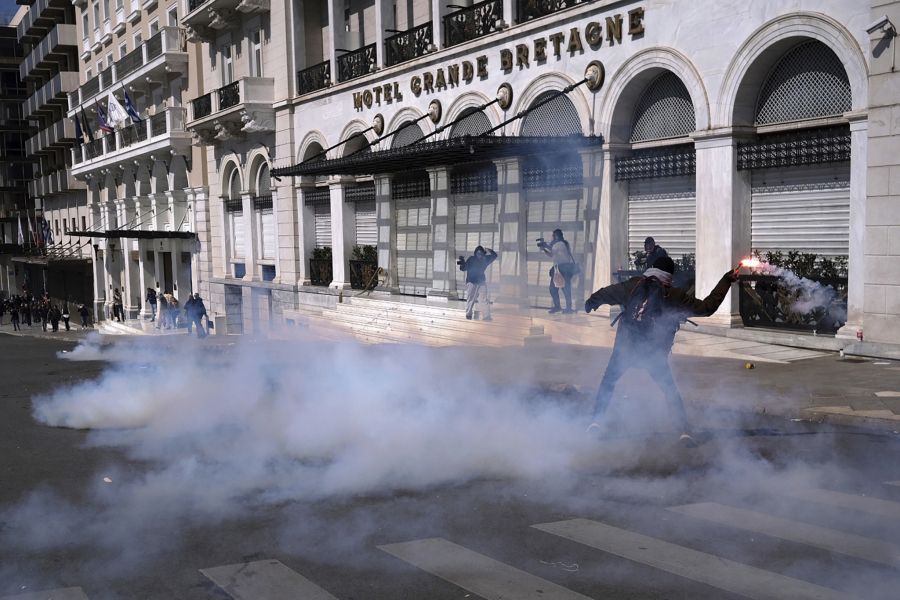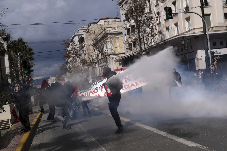 OPŠTI HAOS U ATINI! Opšta tuča demonstranata i policije na protestu zbog železničke nesreće!