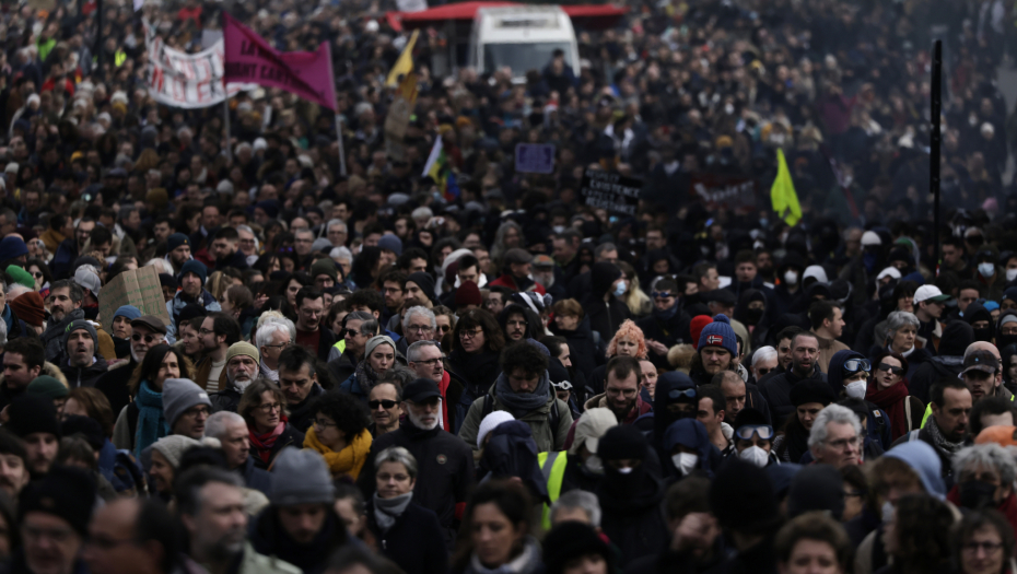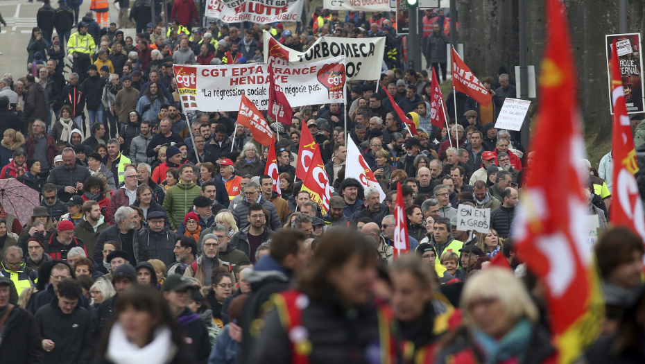Đubretari, zaposleni u komunalnim preduzećima, mašinovođe su među zaposlenima koji štrajkuju širom Francuske, pokazujući bes zbog predloga zakona kojim treba da se podigne starosna granica za odlazak u penziju sa 62 na 64 godine što sindikati vide kao širu pretnju francuskom socijalnom modelu.