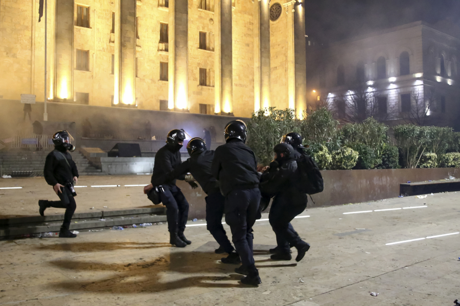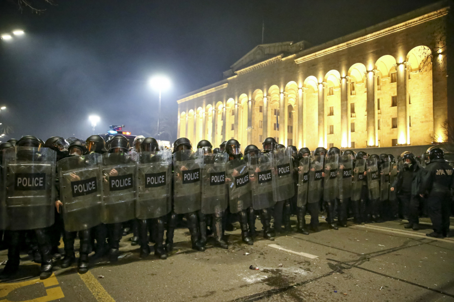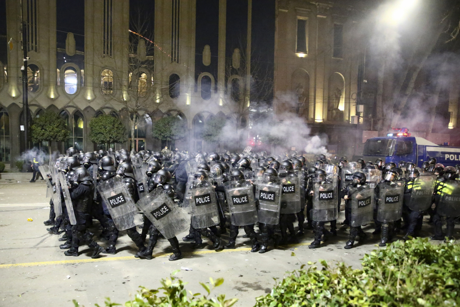 Policija je u utorak uveče uspela da rastera nerede ispred parlamenta, uhapsivši više od 60 ljudi zbog nereda. Opozicija je u sredu postavila ultimatum tražeći njihovo oslobađanje i povlačenje zakona o stranim agentima.
