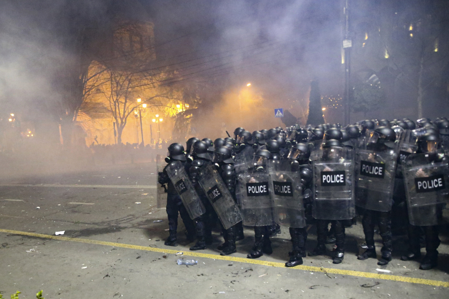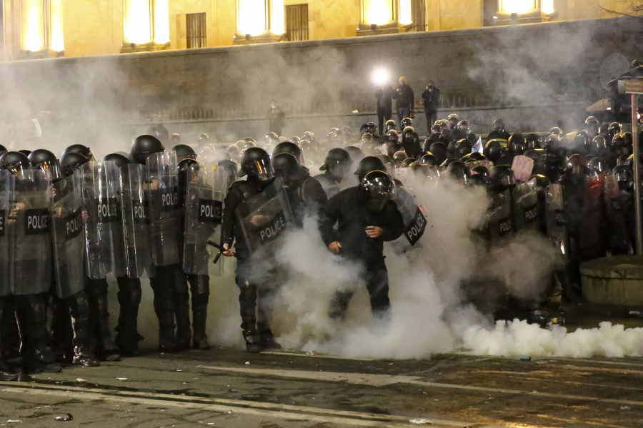 Hiljade demonstranata, od kojih su neki nosili gas maske i šlemove, opkolilo je u sredu uveče zgradu parlamenta u Tbilisiju, protestujući zbog zakona kojim bi se obuzdale nevladine organizacije koje se finansiraju iz inostranstva. Policija je upotrebila suzavac i vodene topove u pokušaju da ih rastera.