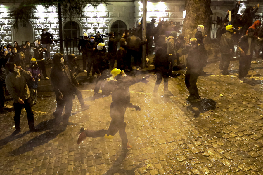 OPŠTI HAOS ISPRED PARLAMENTA U GRUZIJI Policija ispalila vodene topove i suzavac, demonstranti uzvraćaju molotovljevim koktelima (FOTO)