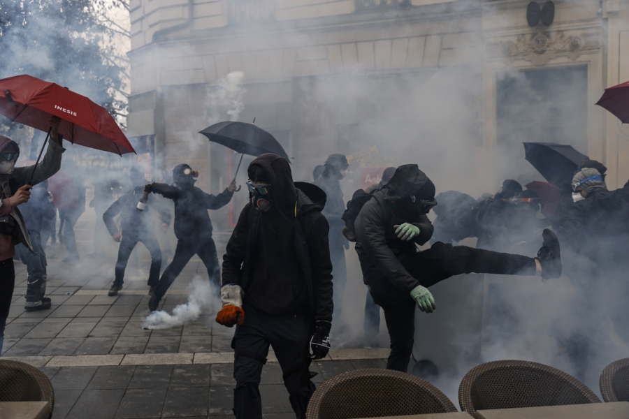Policija je u okršajima u Parizu upotrebila suzavac, a demonstranti pod kapuljačama su palili smeće i uništavali autobuska stajališta, ulične lampe i ostalu uličnu opremu.