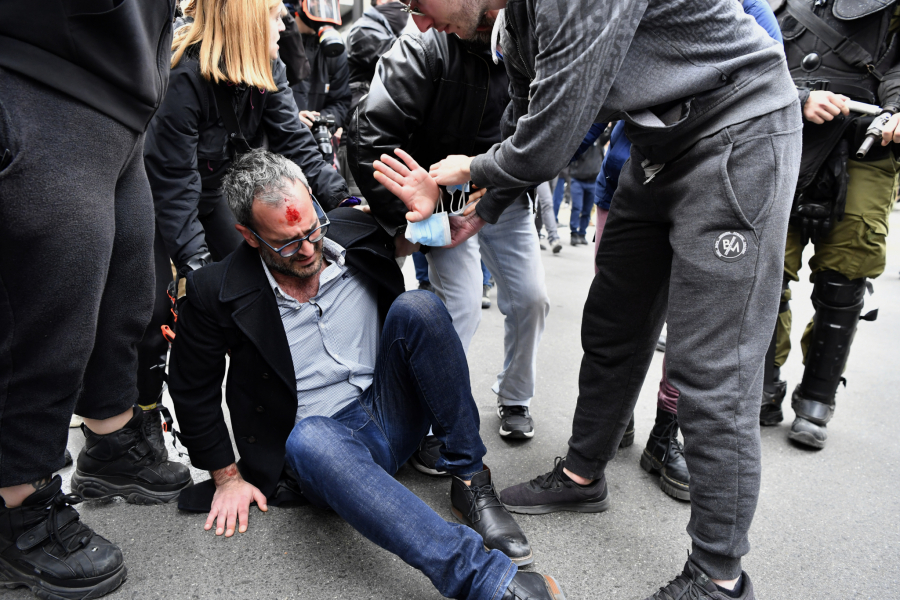 Demonstranti su bacili Molotovljeve koktele na policijski kordon u blizini parlamenta, a interventna policija je odgovorila bacanjem suzavca i zvučnih granata tokom kratkog sukoba na velikim, mirnim protestima.