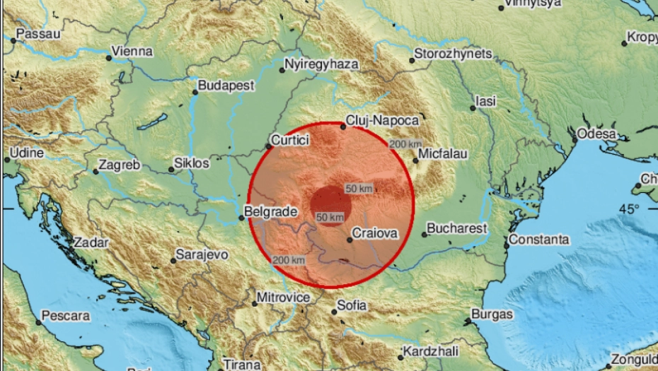 Zemljotres se osetio u krugu od 200 kilometara u Rumuniji i u Srbiji i Bugarskoj, naveo je EMSC na Tviteru.