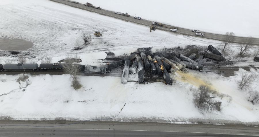 Fotografije i video snimci sa lica mesta pokazuju gomilu zgužvanih vagona okruženih snegom sa nekoliko cisterni koje još gore.
