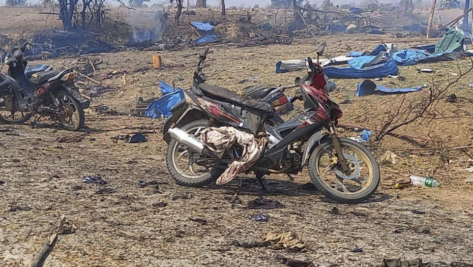 Svedoci su rekli za Asošiejted pres da je lovac vojske bacio bombe direktno na masu ljudi koji su se okupili u 8 sati ujutru po lokalnom vremenu kako bi prisustvovali otvaranju lokalne kancelarije opozicionog pokreta u regionu Sangaing, udaljenog oko 110 kilometara severno od Mandalaja, drugog najvećeg grada u Mjanmaru.