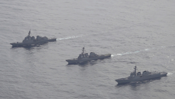U manevrima učestvuju tri razarača opremljena raketnim sistemima Aegis - južnokorejski ROKS Iulgok Ii I, američki USS Benfold i japanski JS Atago, prenosi agencija Jonhap.