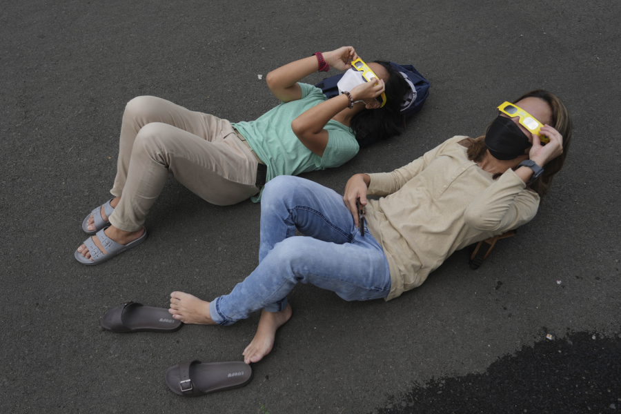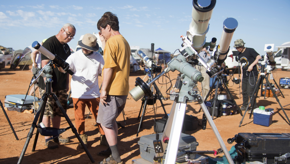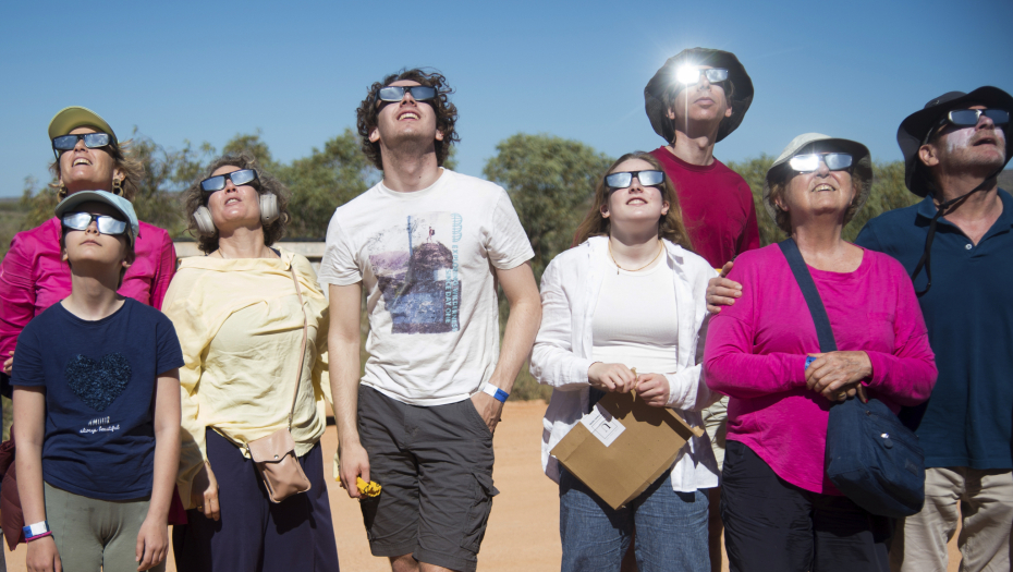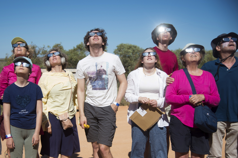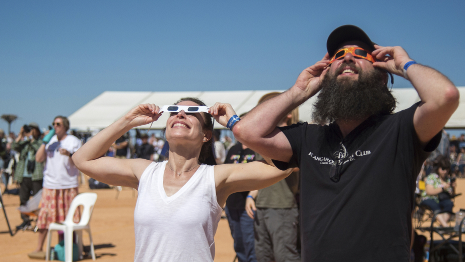 Među okupljenima su bili ljudi iz celog sveta, koji su u Eksmautu kampovali danima u šatorima i prikolicama na crvenoj, prašnjavoj ravnici na obodu grada, sa kamerama i drugom opremom za posmatranje usmerenom ka nebu, prenosi AP.