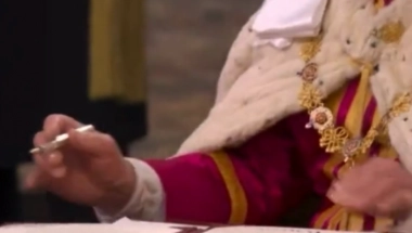 Naravno, to je bilo njegovo potpisivanje krunidbene zakletve u Vestminsterskoj opatiji, a s obzirom na Čarlsovu istoriju sa nalivperima, svi su se tada pitali da li će ponoviti gaf.