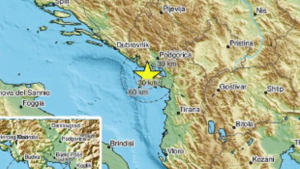 Kako navodi EMSC, zemljotres je zabeležen u Jadranskom moru, a na 10 kilometara od Bara, odnosno 26 kilometara od Cetinja.