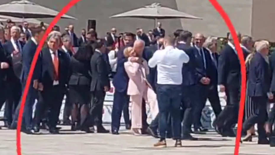 Na snimku se vidi kako albanski premijer Edi Rama prilazi Meloni sa leđa nakon čega je hvata oko vrata i snažno ljubi u obraz. Zbunjena Đorđa Meloni isprva nije shvatila šta se dešava.