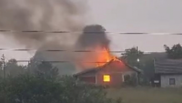 UDAR GROMA ZAPALIO KUĆU Vatrogasci na terenu u Kostajnici, plamen guta objekat (VIDEO)
