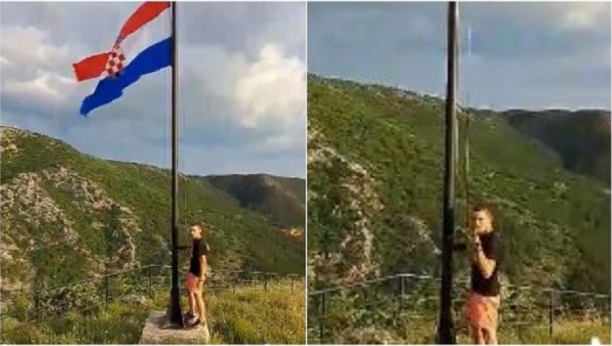 Utvrđeno je da je 20-godišnjak 26. maja u mestu Kovačić, na brdu Gradina, s čeličnog stuba skidao hrvatsku zastavu dok ga je vršnjak snimao i pritom ga podsticao i govorio mu da je skine.