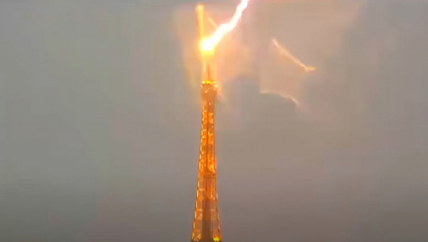 Jedan od najspektakularnijih snimaka je udar groma koji je u nedelju uveče pogodio Ajfelovu kulu, u trenutku dok se nad Gradom svetlosti stuštila velika oluja, pišu Novosti.