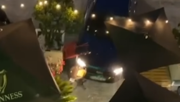 - Dok je tuča još trajala i dok smo pokušavali da izbacimo momke van kafića stric ili ujak jednog od kavgadžija je seo za volan svog vozila i uleteo u baštu prepunu ljudi! Počela je vriska i opšta panika. Obračun je još uvek trajao na ulaznim vratima kafića gde je vozač kamionetom pokušao da se probije i da vozilom uđe u kafić. Srećom velika staklena vrata su izdržala i niko nije povređen. Obezbeđenje je pokušalo da izvuče vozača iz vozila ali je on napravio polukrug i pobegao. Na snimku se vidi kako odlazi dok gura sto iz kafića zaglavljen ispred vozila - prepričava Krivokapić.