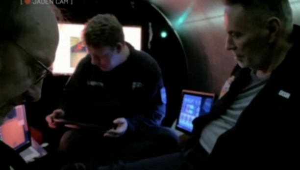 Vidi se kako Grifit, sa zabrinutošću, mahnito radi na kompjuteru pre nego što je pitao posadu, koja je gledala kroz jedan otvor na podmornici, da li se okreće, na šta je ona odgovorila potvrdno, piše Dejli mejl.
