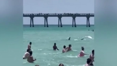 Ljudi su pobegli iz mora u masovnoj panici kada su se ogromna peraja tog stvorenja iznenada pojavila blizu obale na prepunoj plaži na Floridi, u SAD.
