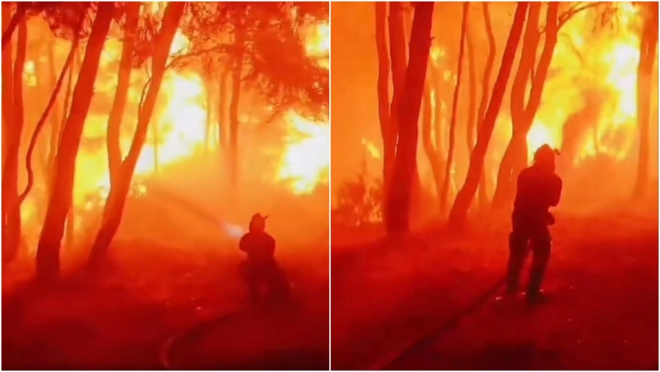 Meteorološka služba Grčke postavila je na Fejsbuk snimak koji pokazuje svu opasnost u kojoj se nalaze koji pokušavaju da obuzdaju požar.