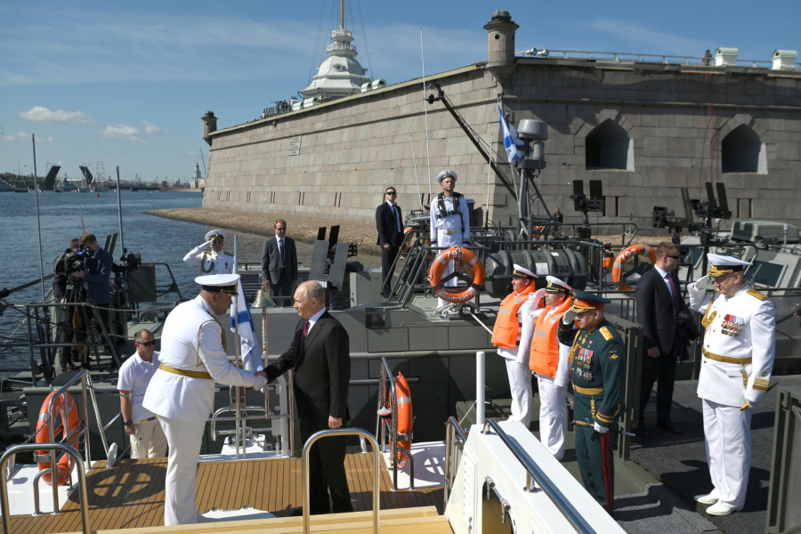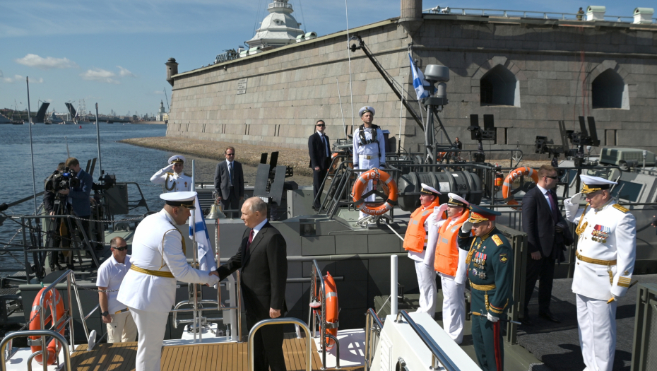 Predsednik Rusije i vrhovni komandant Vladimir Putin prati Glavnu pomorsku paradu na reci Nevi u Sankt Peterburgu, preneo je TAS S. Putin tradicionalno prati pomorsku paradu, koja se održava na Dan ruske mornarice, na reci Nevi i obilazi paradni sastav borbenih brodova u Kronštatskom putu na predsedničkom čamcu.