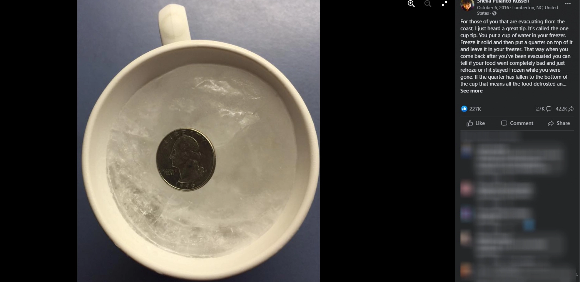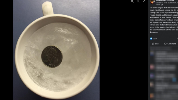 Šila Pulanko Rasel je podelila savet pre tri godine, preporučujući da zamrznete šolju vode, stavite novčić na vrh i ostavite ga u zamrzivaču.