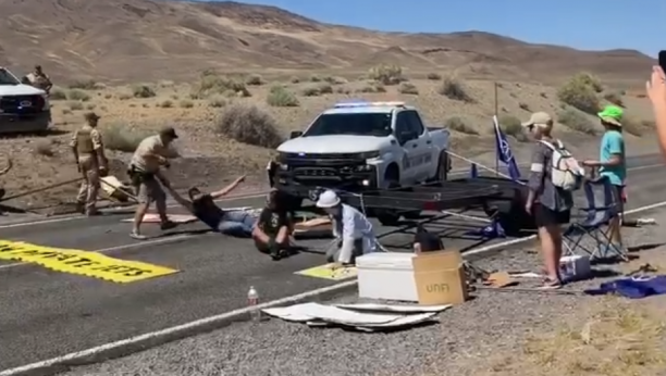 POLICIJA BRUTALNO RAZBUCALA AKTIVISTE! U Nevadi pokušali da blokiraju put, pa završili u lisicama (VIDEO)