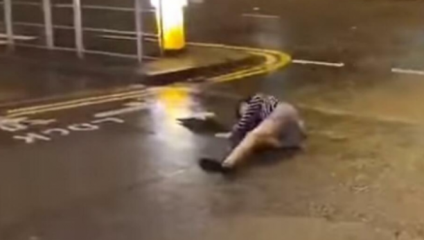 DEVOJKU ODNEO TAJFUN, LETELA JE PO ULICI! Apokaliptična scena, samo je protutnjao i bacio je na pod