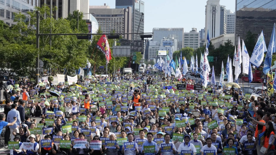 Posle jednoipočasovnog mitinga, demonstranti su juče marširali oko pet kilometara u centru Seula do predsedničke kancelarije.