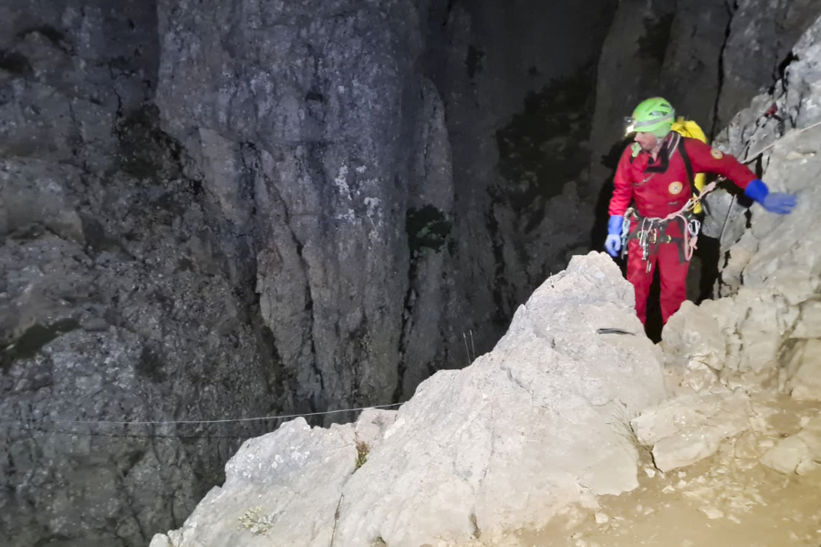 Diki, koji se tada nalazio na dubini od 1.040 metara, bio je suviše slab da bi se sam popeo do izlaza, pa su spasioci morali da iznesu na nosilima.