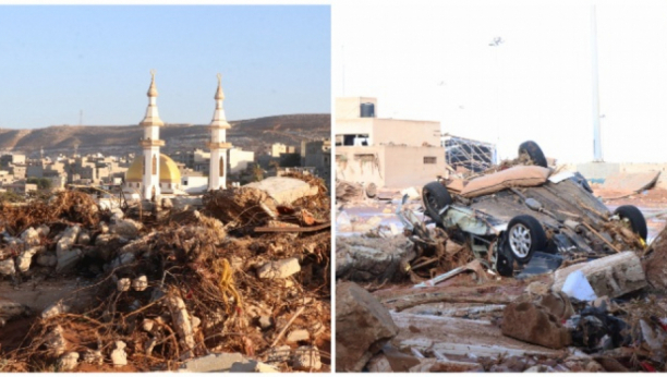 Satelitske fotografije Derne pre i nakon poplava pokazuju štetu i razmere poplava koje su pogodile taj istočni lučki grad, tako da je relativno uzak plovni put kroz centar grada sada nekoliko puta širi, a da su sve zgrade koje su se nalazile duž puta srušene, preneo je Rojters.