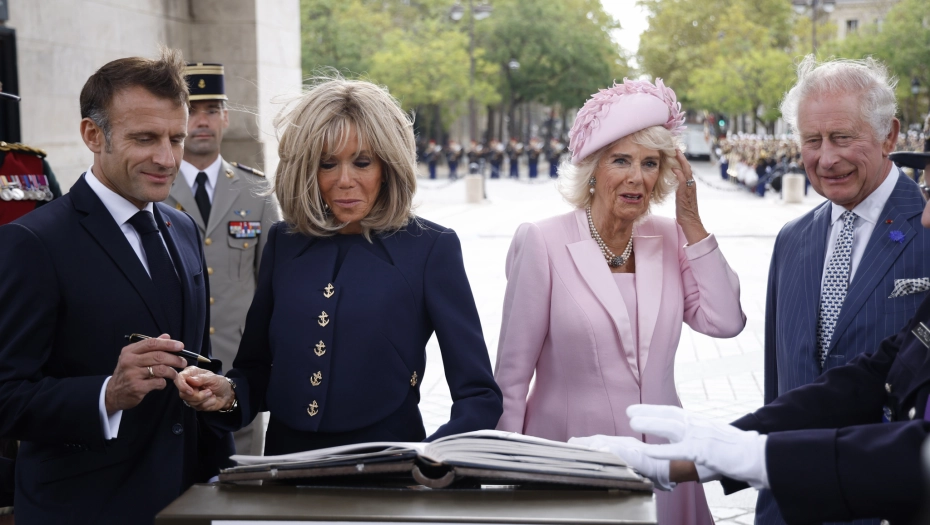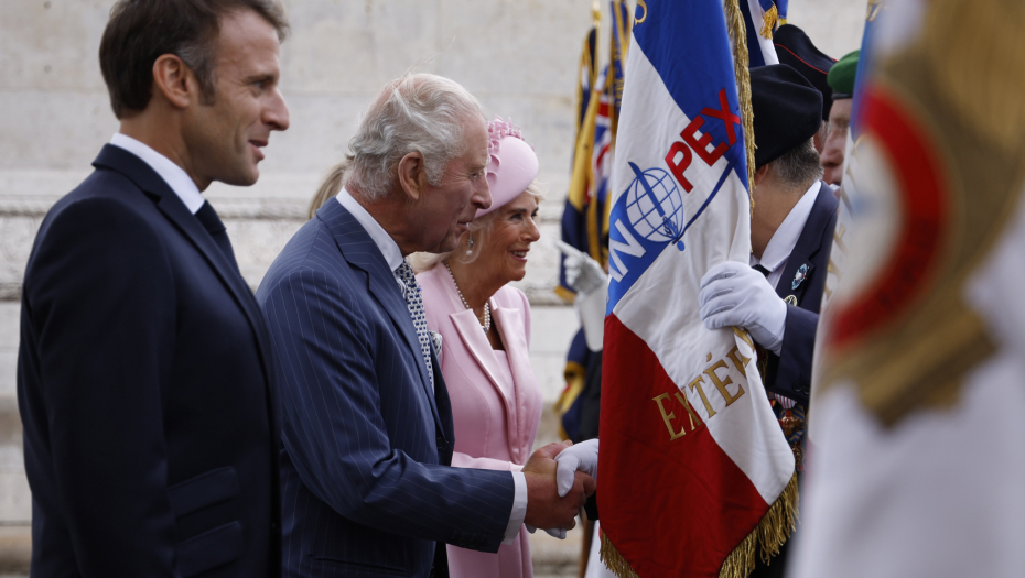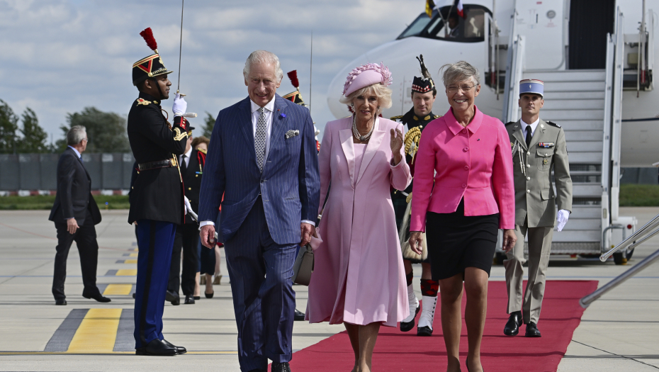 Avion u kojem su putovali Čarls i njegova supruga Kamila sleteo je na pariski aerodrom Orli, gde ih je dočekala francuska premijerka Elizabet Born, prenosi Rojters.