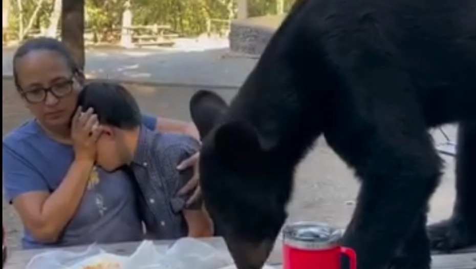 MEDVED SKOČIO NA STO, PA POČEO DA JEDE SVE PRED SOBOM Isplivao snimak, majka čvrsto držala sina sa Daunovim sindromom: Čuli smo kako reži! (VIDEO)