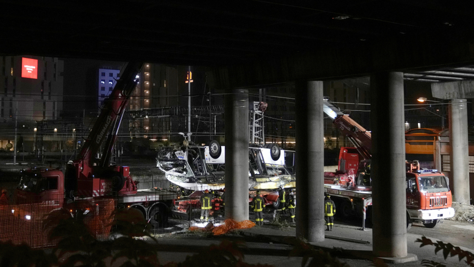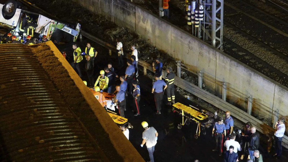 Kako prenose italijanski mediji, autobus je na nizbrdici probio zaštitnu ogradu, pao i završio između magacina i koloseka stanice Mestre, zapalivši se.