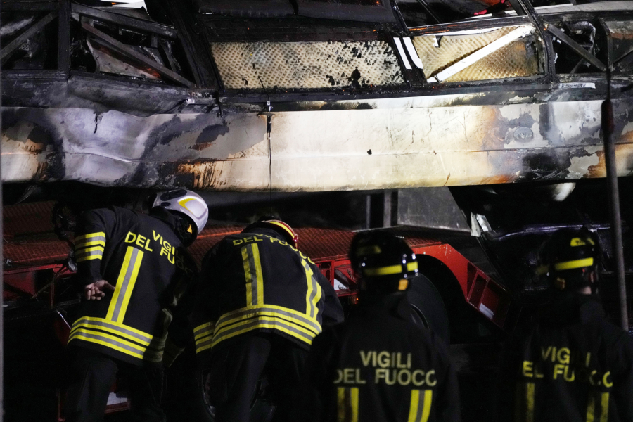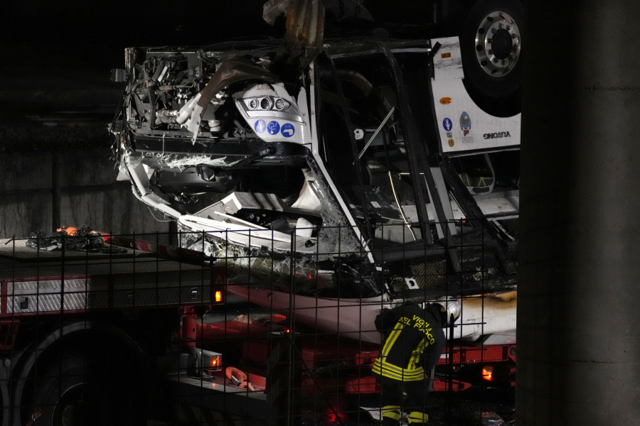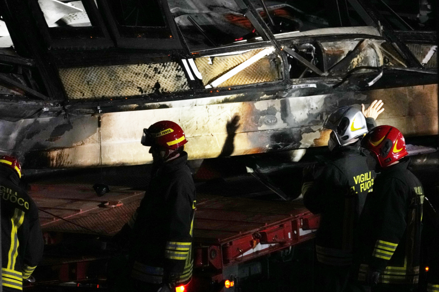 Autobus u kojem je bio veći broj ljudi srušio se večeras nešto pre 20 časova sa nadvožnjaka Liberta u Mestreu, u blizini Venecije i nakon 10 metara leta pao na železničku prugu i zapalio se.