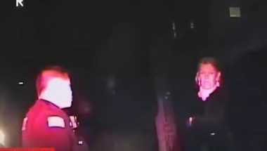 Deo razgovora van kamere između policajca i drugog čoveka koji se predstavlja kao penzionisani oficir iz Hakensaka u Nju Džersiju, može se čuti na snimku kontrolne kamere.