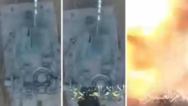 Na jednom snimku, čija autentičnost za sada nije potvrđena, vidi se uništenje navodnog izraelskog tenka bombom sa drona.