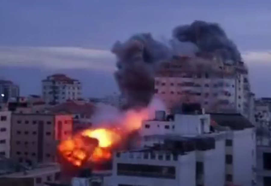 Dok se Jumna el Sajed obraćala, snažna eksplozija, koja se vidi i na snimku, odjeknula je iza nje, nakon čega je četrnaestospratnica počela da se ruši.
