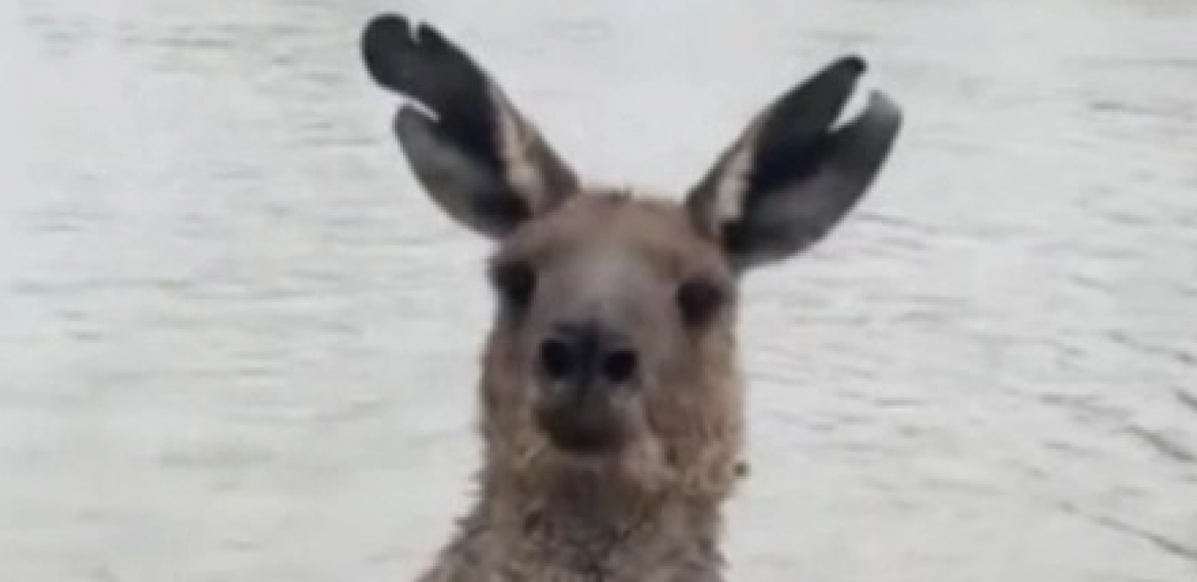 Čovek tada juri u reku da pokuša da spase svog ljubimca i može se čuti kako psuje kengura i viče: "Ubiću ti j..... glavu. Pusti mog psa".