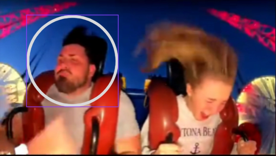 Nakon što se njihovo sedište "lansiralo" u nebo, muškarcu se ispala krunica sa zuba. Kada je to videla, devojka od njega je prasnula u smeh, a momku je bilo vidno neprijatno.