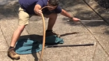 Naime, on je posmatrao zmiju koja se zavukla u cev, te joj je oprezno prišao i izvukao je golim rukama. Prvo ju je uhvatio za rep, dok se ona na sve načine opirala u pokušaju da ujede svog neprijatelja.