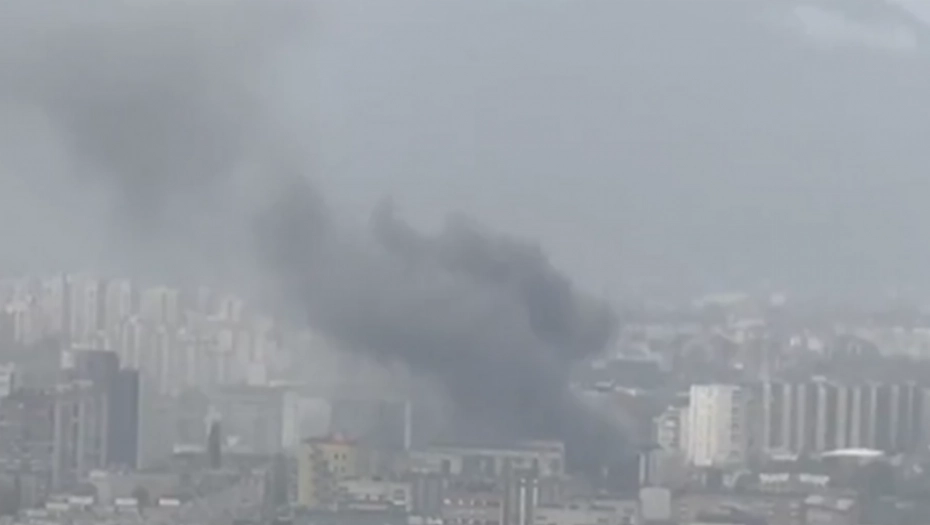 Crni dim kulja iznad Sarajeva. Jak vetar koji puše od jutros otežava posao vatrogascima.