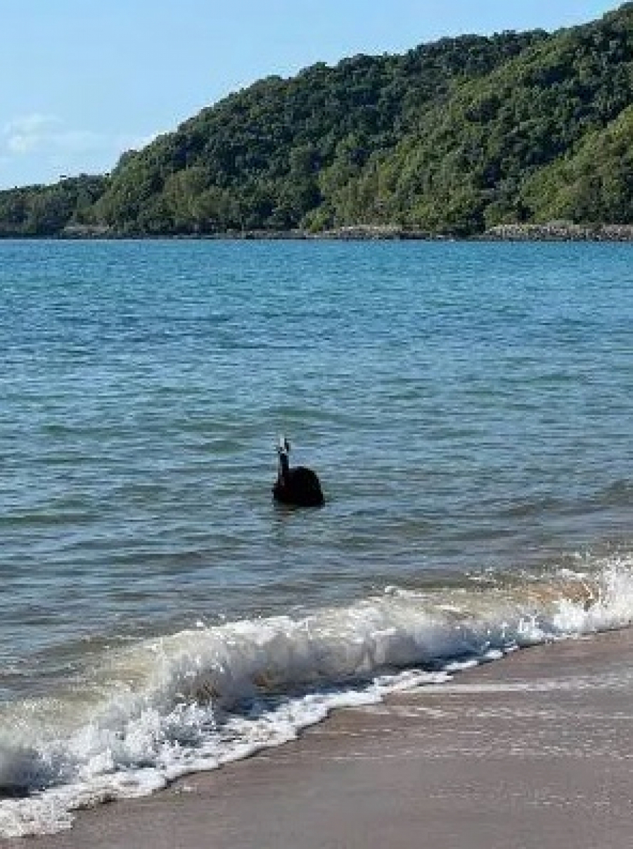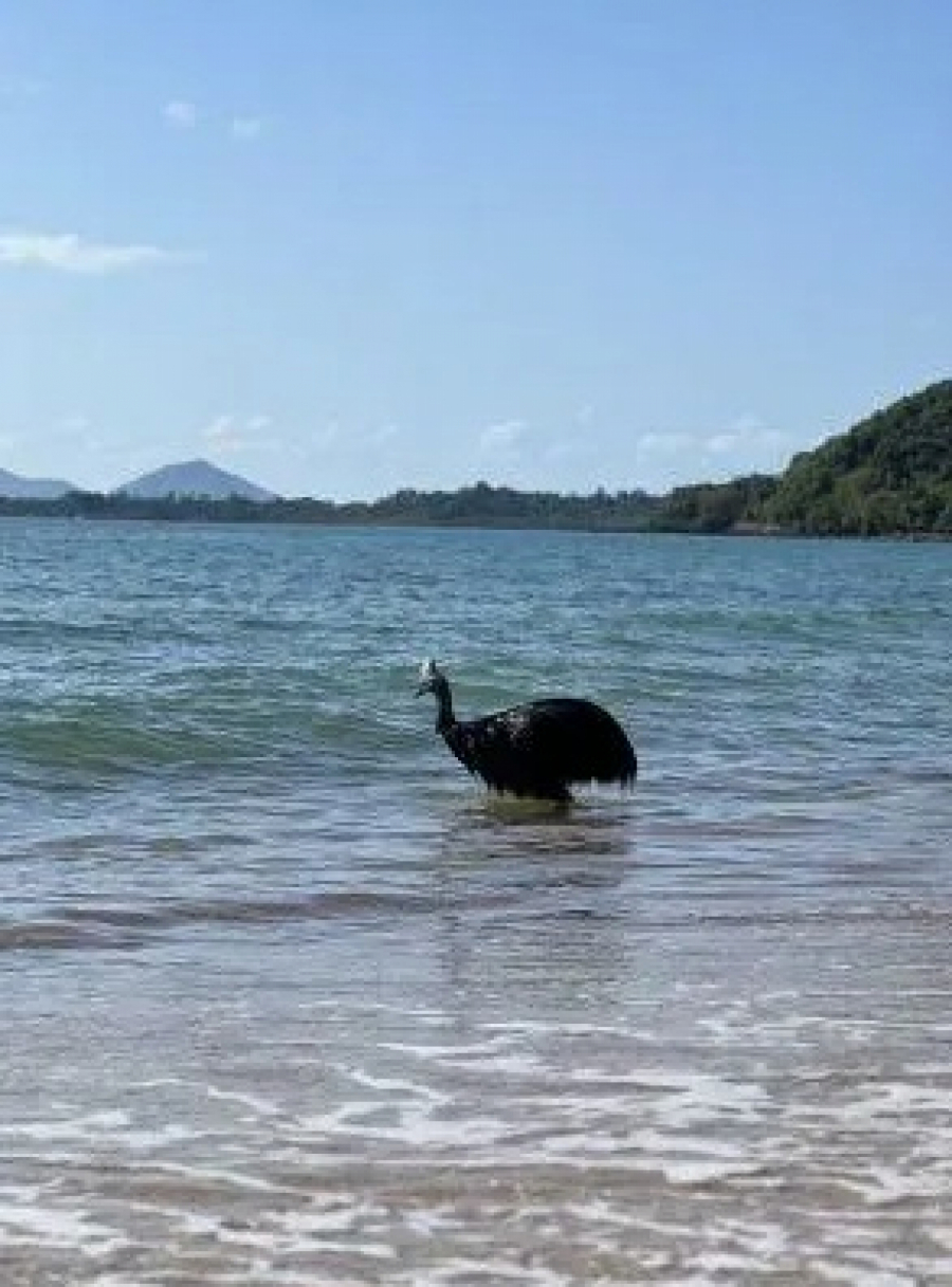 Posetilac je prvobitno upozorio Nikitu Mekdauel, domaćina kampa Bingil Bej, nakon što je primetio kazuara kako pliva oko 200 metara od obale.