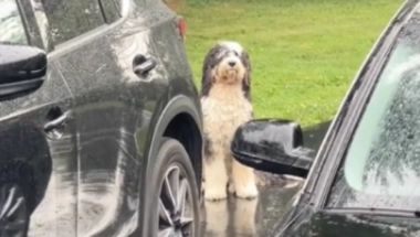 Dok su njeni vlasnici pakovali kofere u auto, pripremajući se za put, Skvaš je odlučila da bude pored automobila.