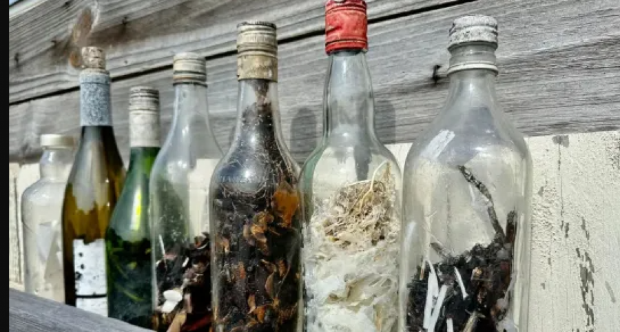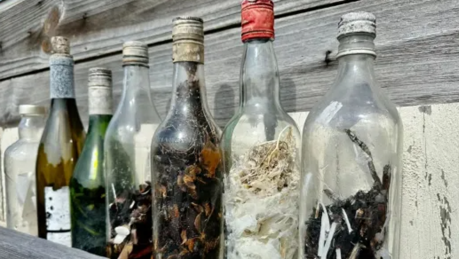 Džejs Tunel je pronašao osam veštičjih boca od 2017. godine, od kojih su neke bile prekrivene školjkama jer su mnogo vremena provele u okeanu.