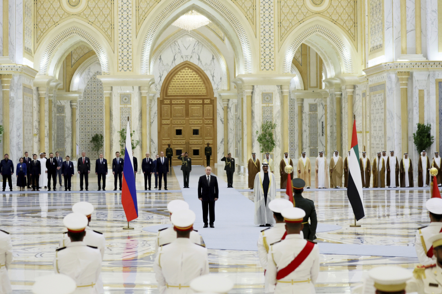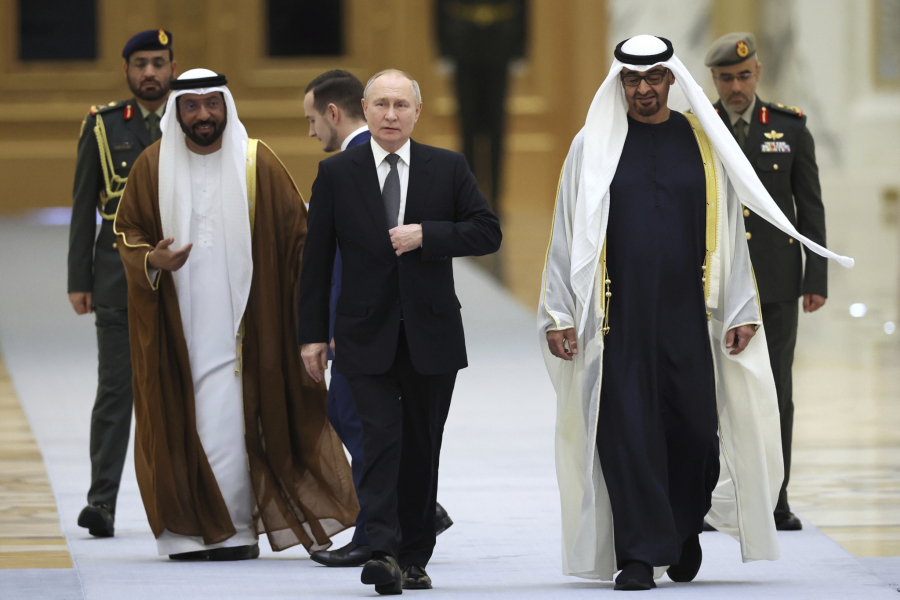Doček u Abu Dabiju bio je veličanstven, sa avionima koji mlazovima formiraju rusku zastavu, a na kopnu su mu počast odali vojnici na kamilama i konjima. Putin je, posle sastanka sa predsednikom Emirata, Šeikom Muhamedom bin Zajedom al Nahjanom, izjavio da su Emirati glavni trgovinski partner Rusije u arapskom svetu.