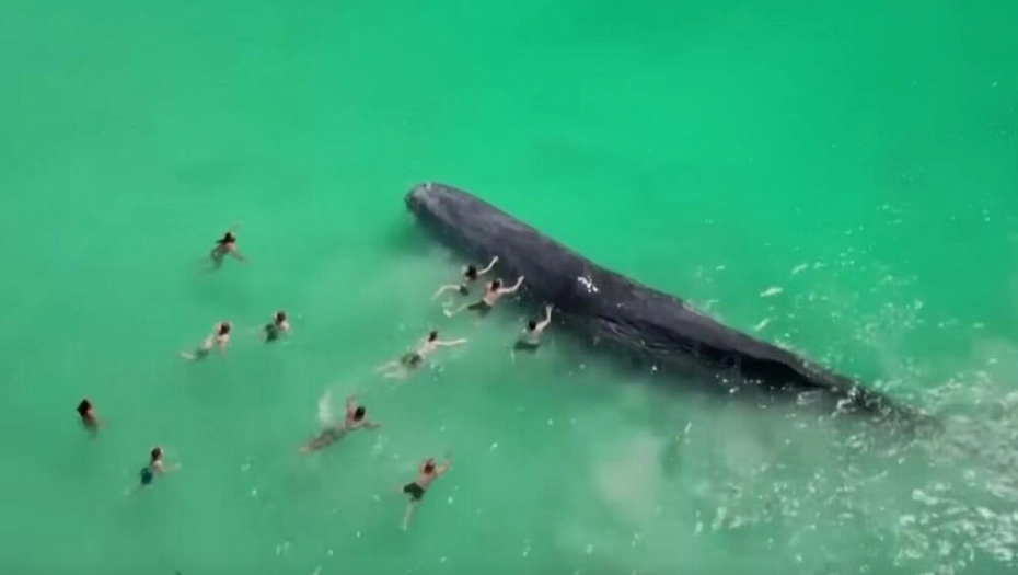 Životinja teška 30 tona posle susreta s kupačima vratila se u dublje vode, ali su stručnjaci za divlje životinje upozorili na opasnost od nasukavanja i da bi bilo kakva interakcija s ulješurom mogla da bude opasna.